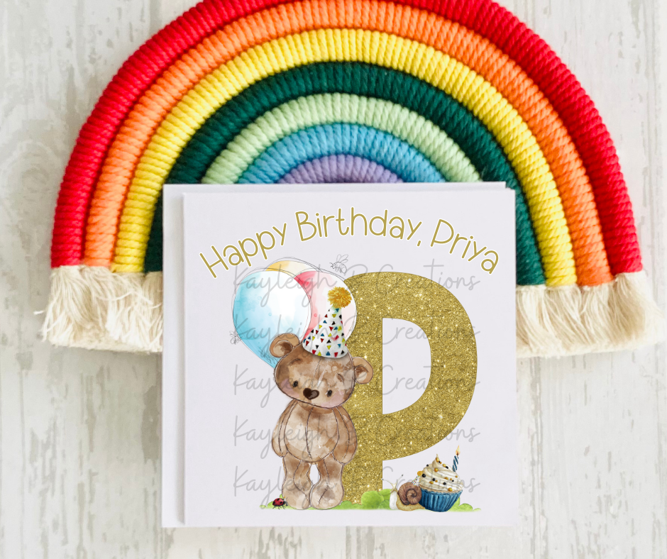 Handmade Birthday Card - Personalised, Birthday Bear Alphabet Design, Blank Inside.