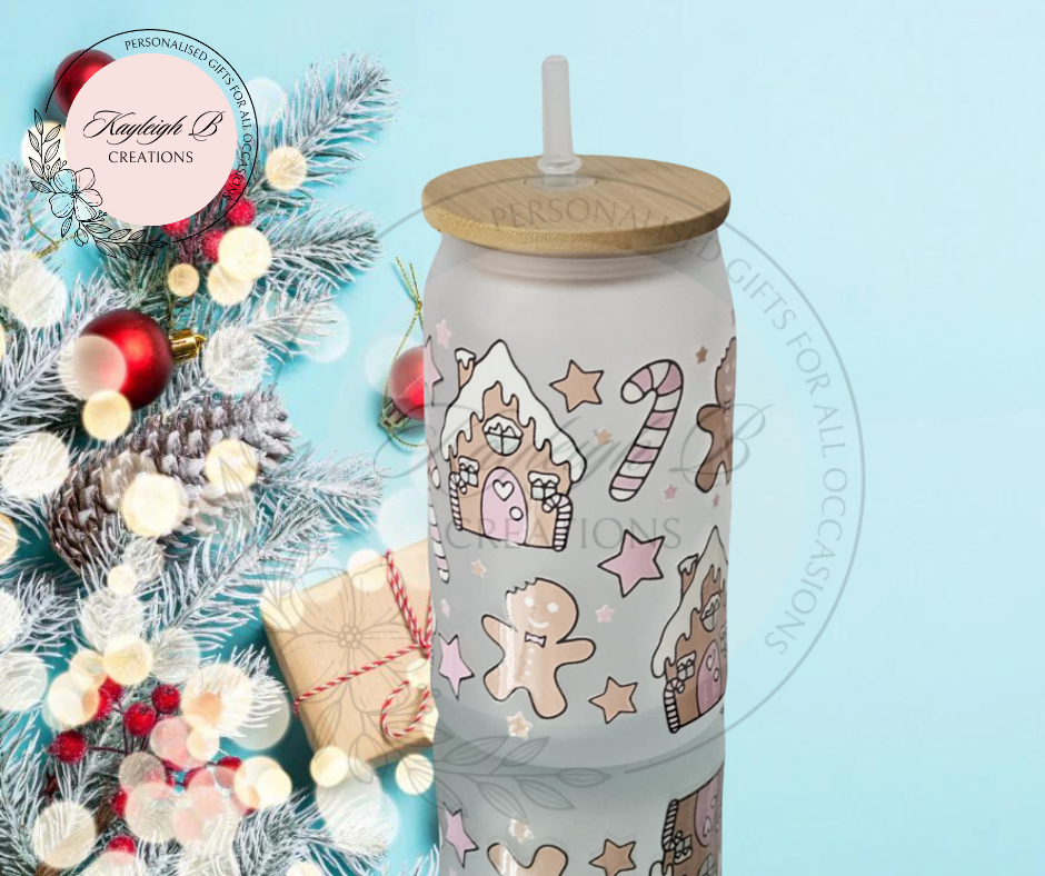 Our beautiful Christmas Gingerbread House Design makes the perfect 16oz/470ml reusable glass can to enjoy not only your iced coffees but any cold drink and Will make the perfect gift this Christmas time or be a great treat for yourself.
