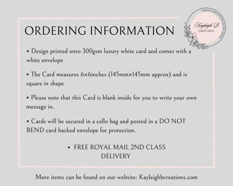 â‘ Design printed onto 300gsm luxury white card and come with a white envelope