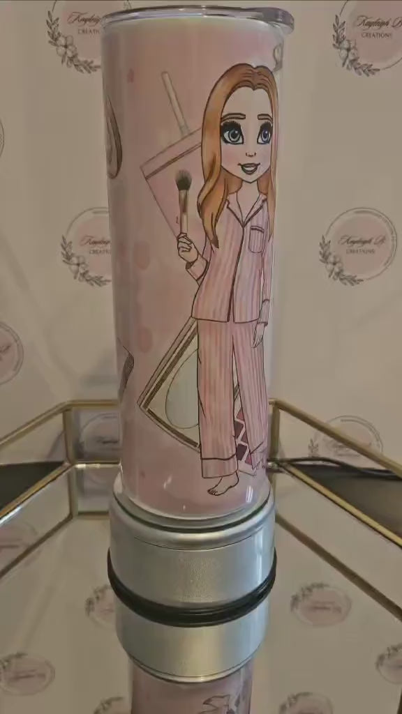 Makeup Dolly 20oz Skinny Tumbler with Metal Straw, Hot or Cold Drinks, Make up, Teen Gift, Secret Santa, Birthday, Personalised