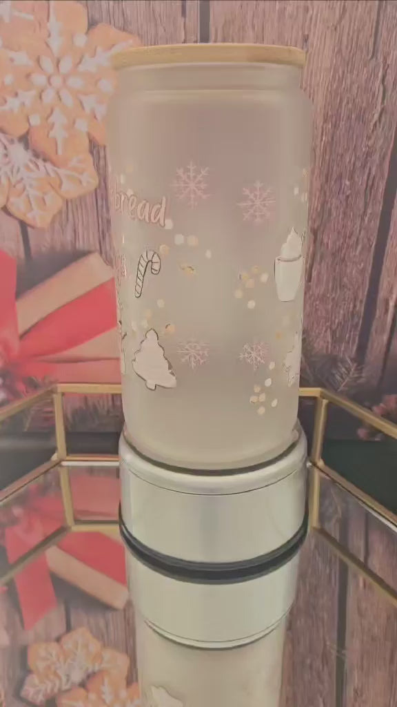 Our beautiful Christmas Gingerbread Hugs Design makes the perfect 16oz/470ml reusable glass can to enjoy not only your iced coffees but any cold drink and Will make the perfect gift this Christmas time or be a great treat for yourself.