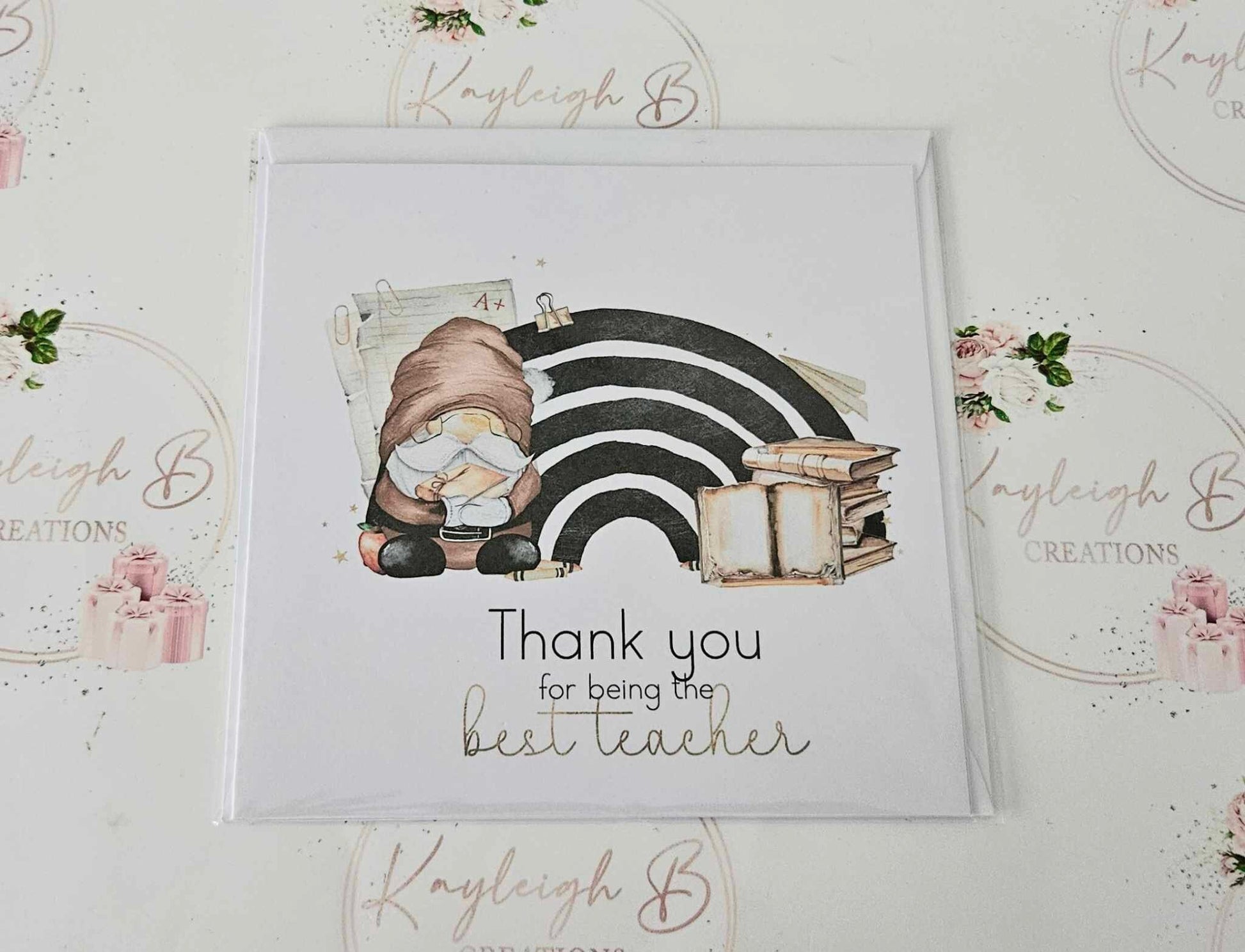 Teacher Thank You Card, End of Term Card, Teacher, Teaching Assistant, Nursery Teacher, Gonk/Gnome Design, Blank Inside, Personalised