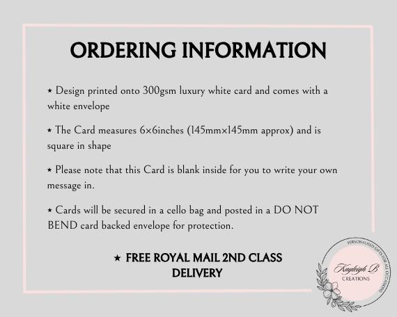 ** All cards are sent Royal Mail 2nd class. Please note this when ordering and allow time for arrival **